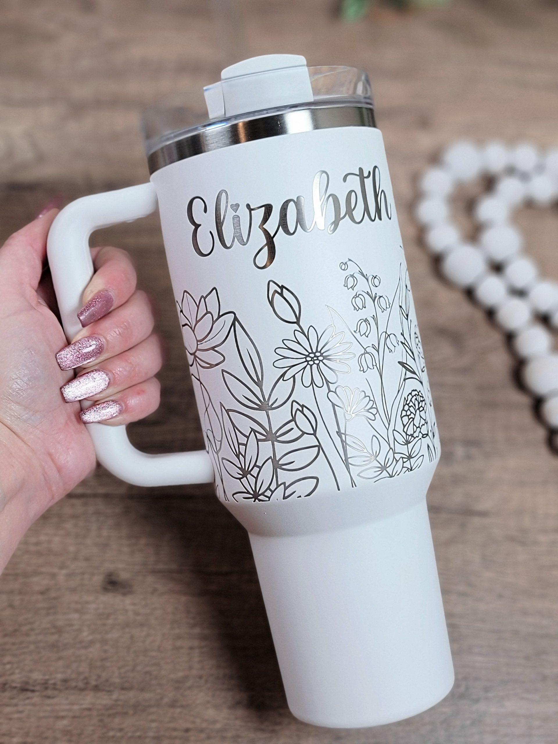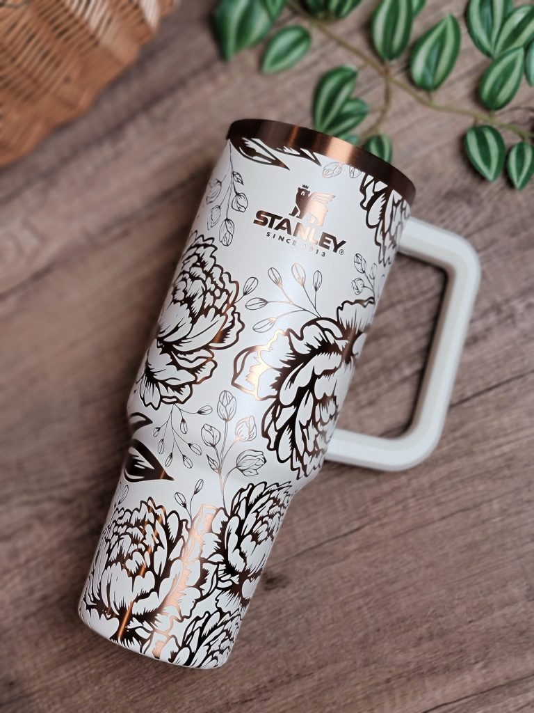 Now, back to that epic Stanley cup. This particular cup was a send-in. That's when a customer sends in their cup in for an engraving. The customer paid $300 for the cup alone! BreAnn charged $75 for the engraving. This cup took one hour to engrave and she did have to take off the handle and then attach it back again after engraving. What is her advice to other engravers?