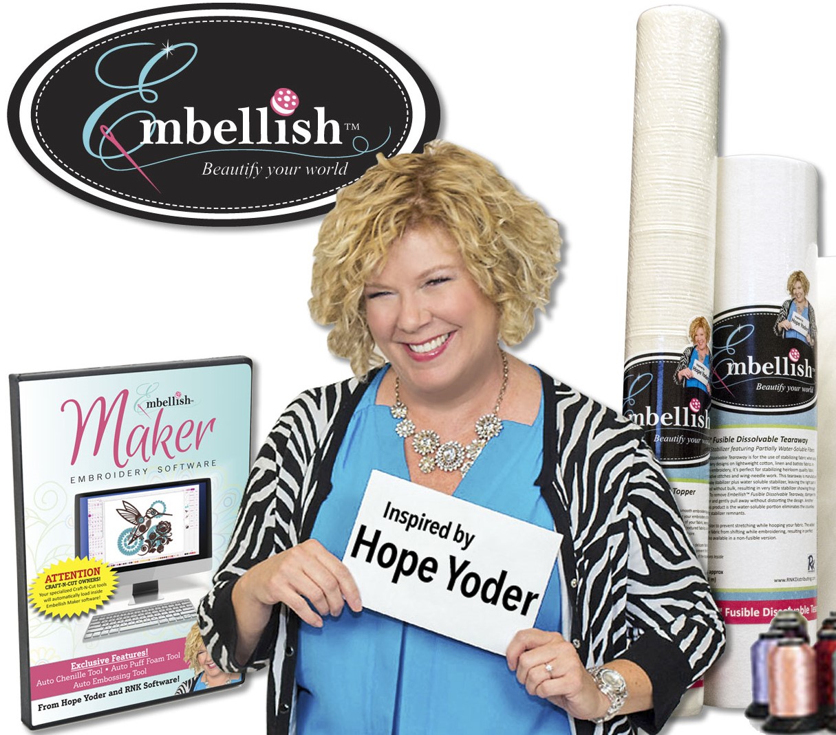 I have had the honor of being a spokesperson and the inspiration behind the brand of products for Embellish By RNK Distributing.